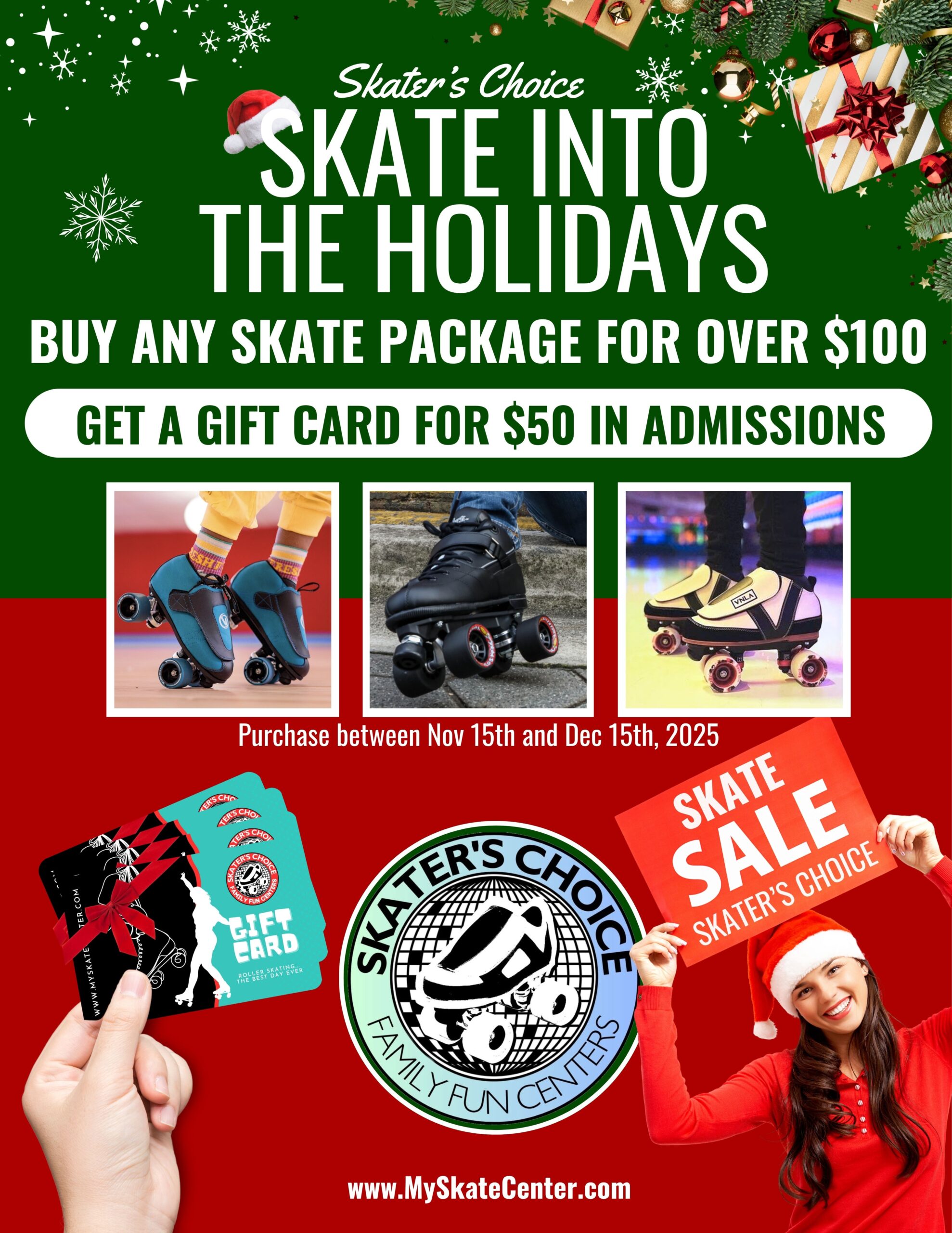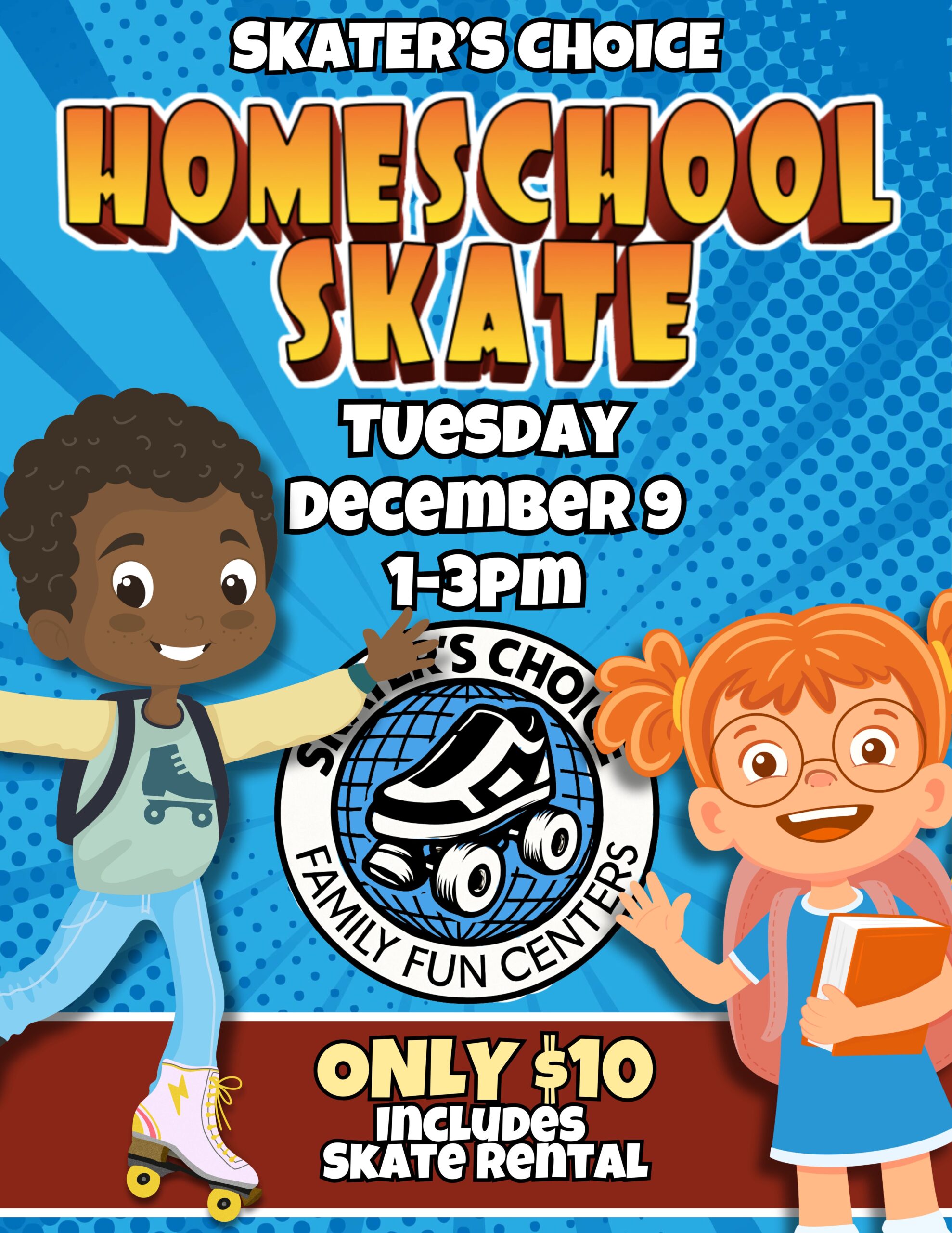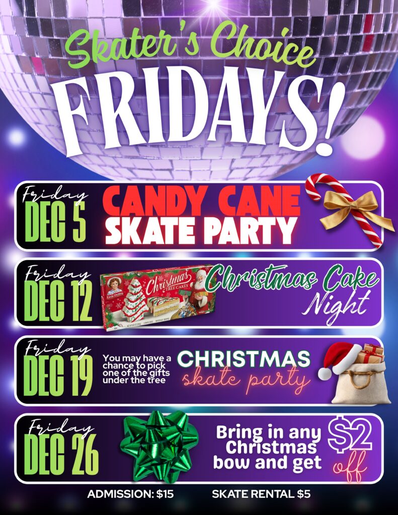 Join our team! Skater’s Choice is hiring for part-time weekend positions– concession workers, team leaders, skaters, entertainers, or game tech. Must be 16 years of age or older!