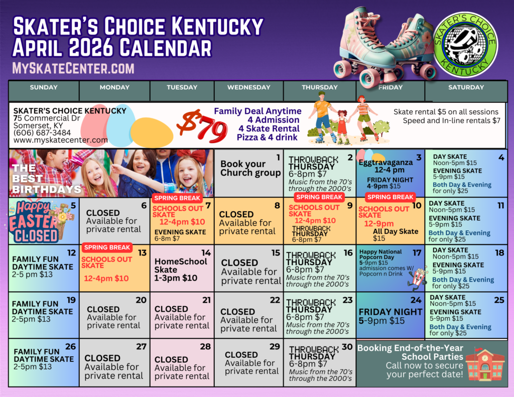 Lake Cumberland’s Premiere Roller Skating Rink and Birthday Party Venue.